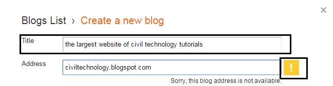 Now Click on Sign in option and type your Gmail ID and starting your website but Remember you must need Gmail ID like( Moqaddark@gmail.com ) .If you haven’t then you can’t make the Website. After login a page will open like that here you can select you domain name your website title .For example you want to make website on Civil Technology then you can select like that ''civiltechnology.blogspot.com'' .during typing your domain name (your website name) the Blogger will tell you that is available or not available. Like below in photo